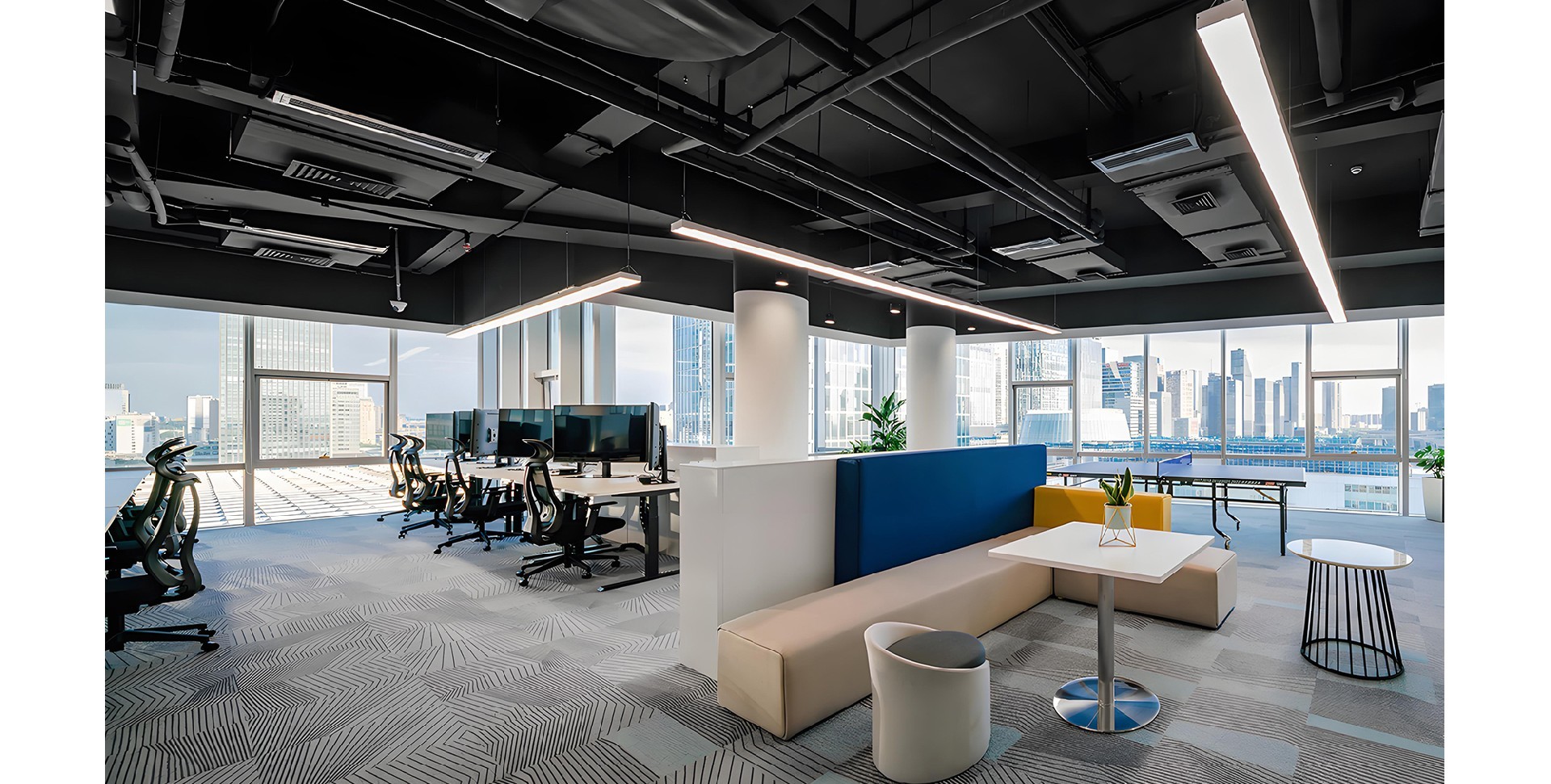 The design embodies simplicity and professionalism, emphasizing the combination of functionality and aesthetics. Emphasize the professionalism and efficiency of business office, balance work and rest, focus on space...