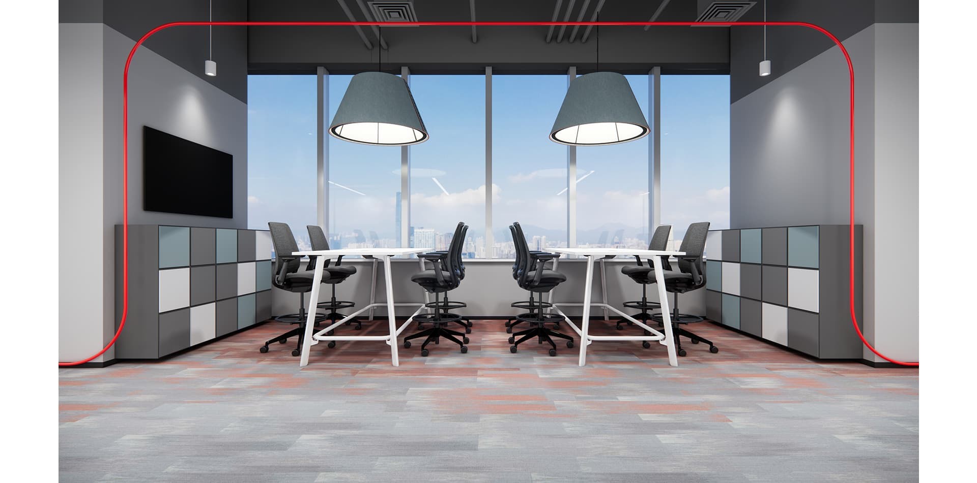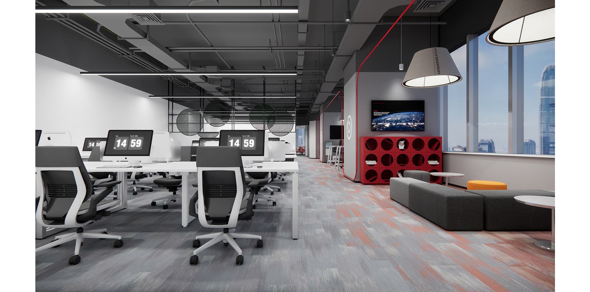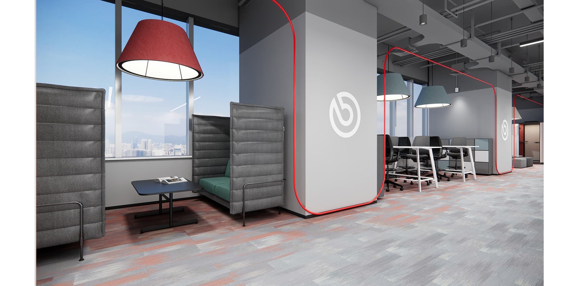The decoration of Brembo's office highlights elements of industrial style, with the corporate red and white logo colors as the main tone, incorporating some green elements to make the corporate...