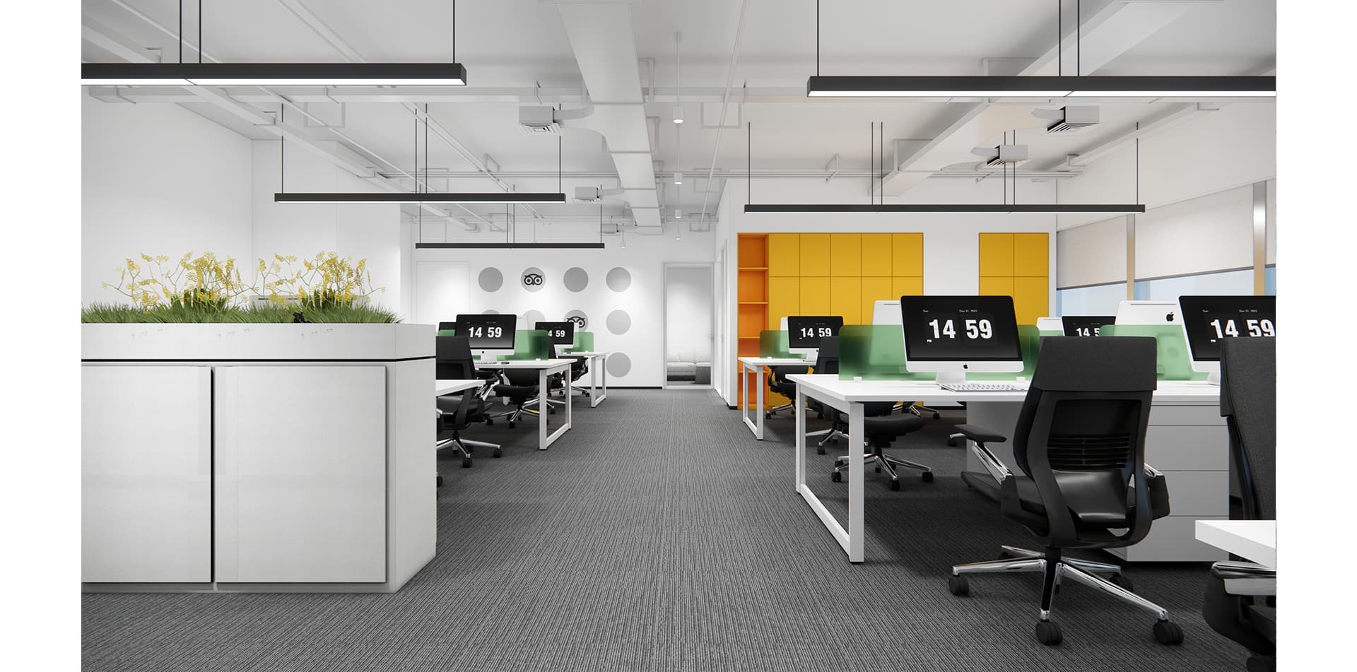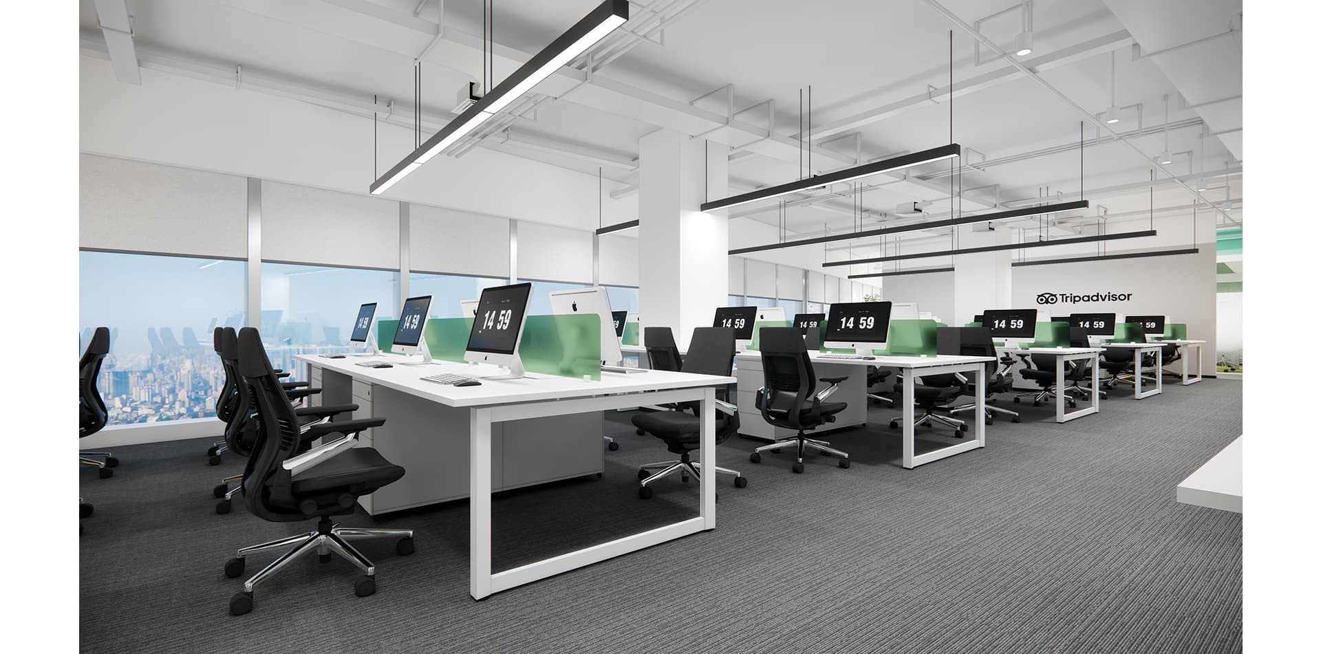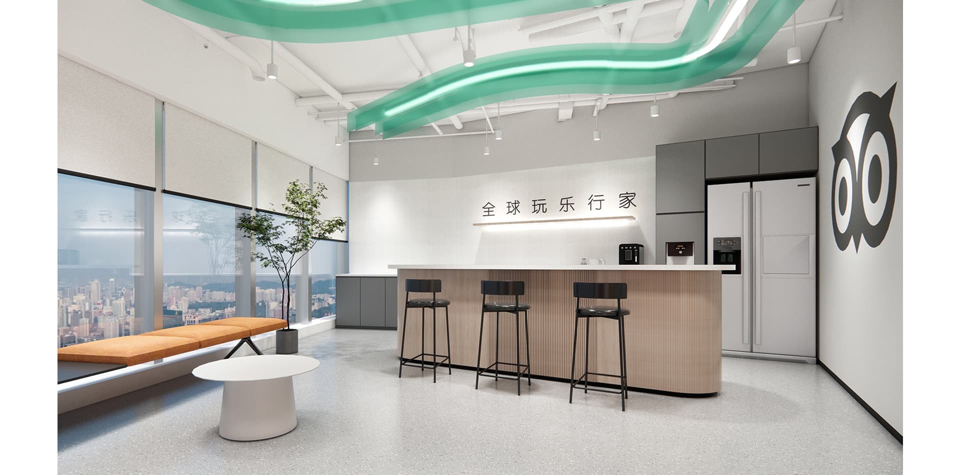 貓途鷹辦公室裝修設計以?簡約靈動?為基調,融入品牌標志與?全球旅行元素?,搭配開放式布局與活力色彩,打造兼具協(xié)作效率與探索氛圍的辦公空間。