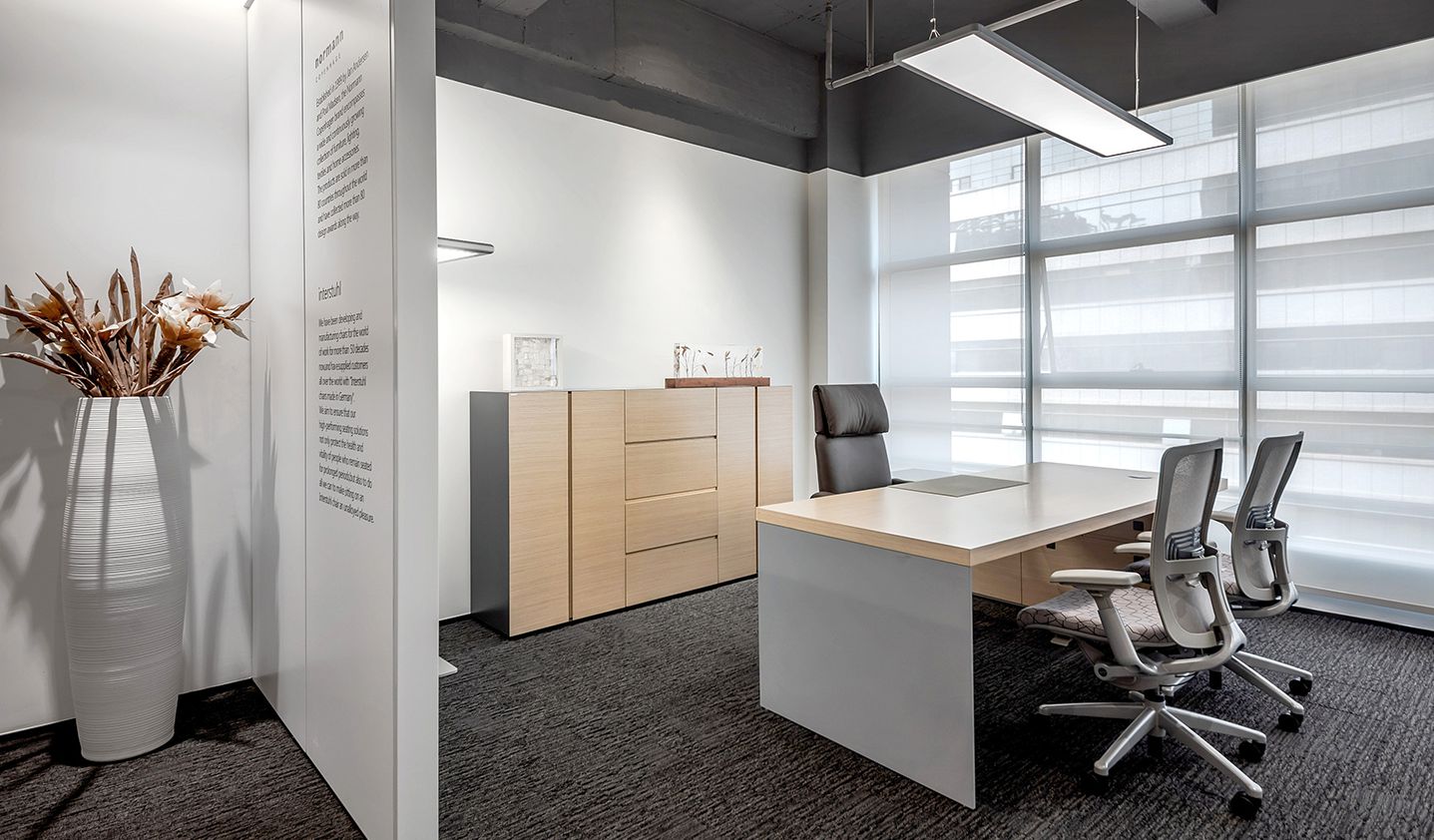用色彩的語言來來表達空間的情感,鮮艷明亮的橘色打造視覺盛宴,激發(fā)對工作的熱情同時表達了設計師對單一空間的色彩點綴的點睛之筆......
