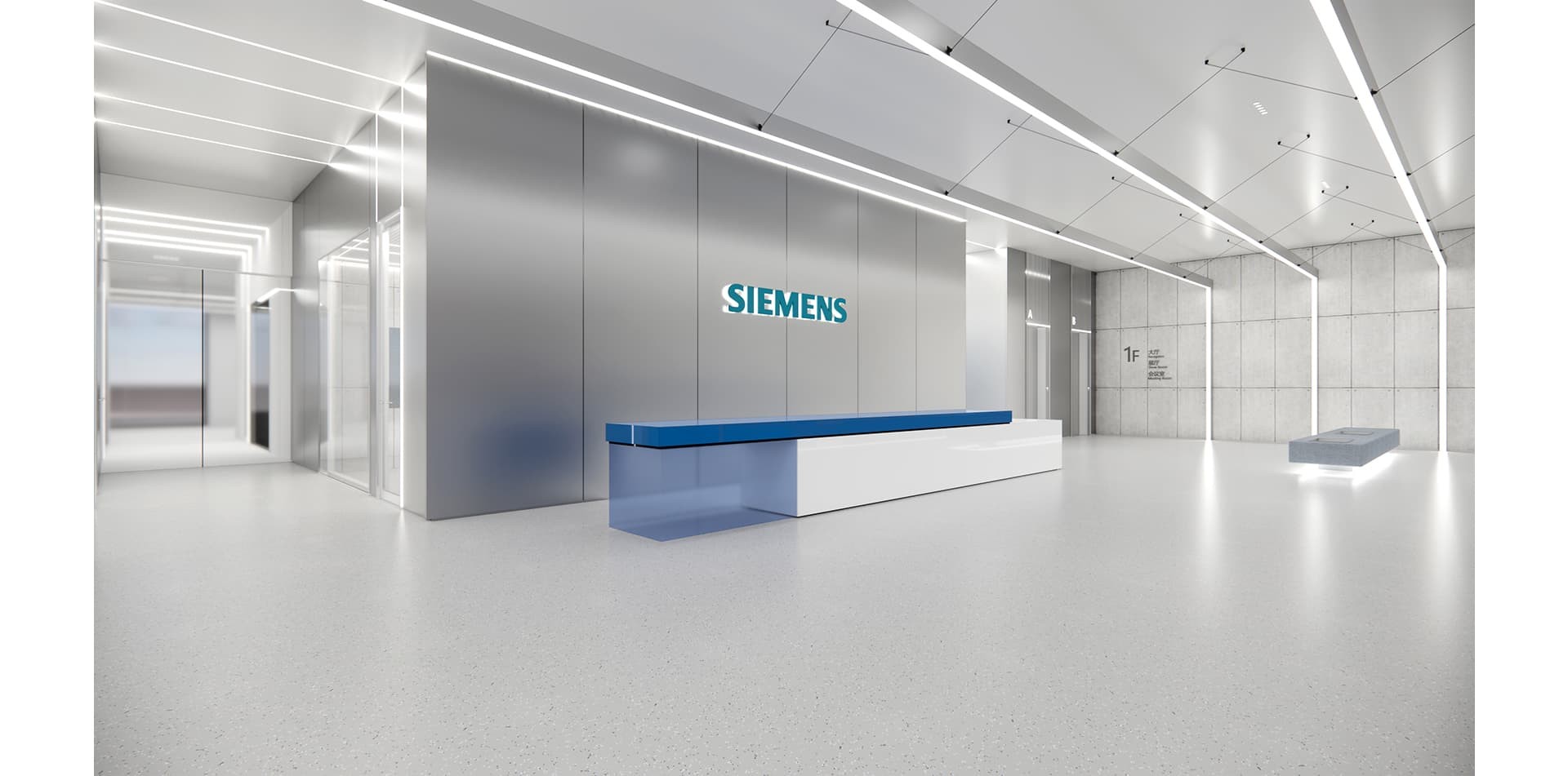 蘇州西門子辦公室裝修設計以?簡約科技?為主調,巧妙融合品牌標識與現(xiàn)代美學,打造出既專業(yè)高效又充滿創(chuàng)新靈感的辦公環(huán)境,極具企業(yè)特色。