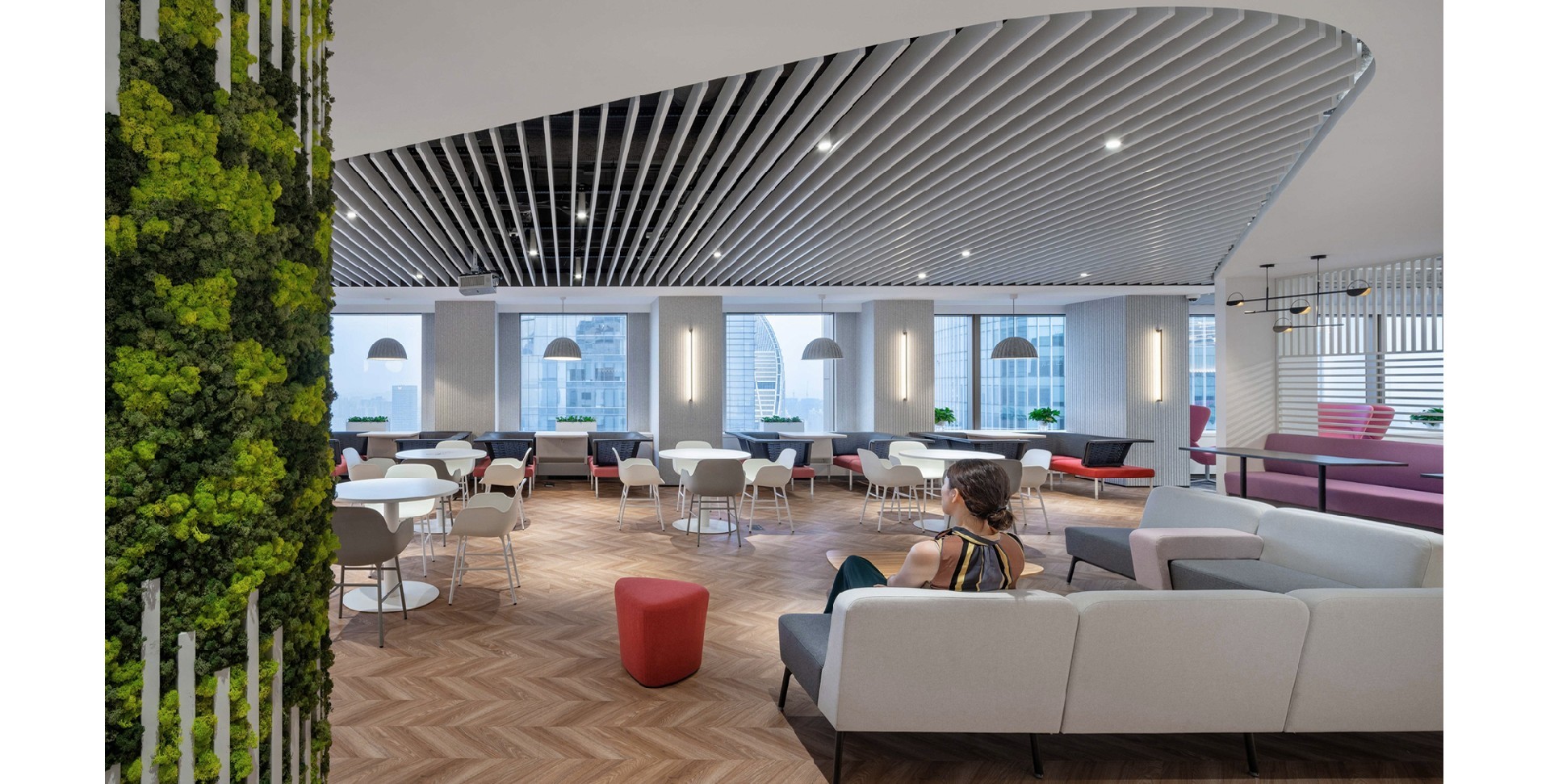 The design combines simple lines, bright lighting, and modern art to showcase the openness and foresight of modern office spaces. By applying the principles of color theory, a bright color has been added to the monotonous...